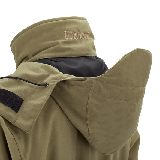 Dreilagige Parkas mit einer Außenseite aus technischem Gewebe, einer wind- und wasserdichten Membran und einem Fleecefutter. Heißversiegelte Nähte und im Laufe der Jahre im Feld optimiertes Muster.