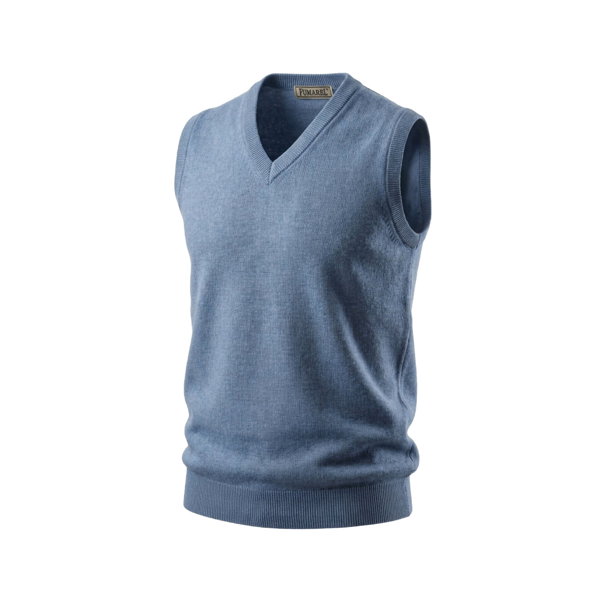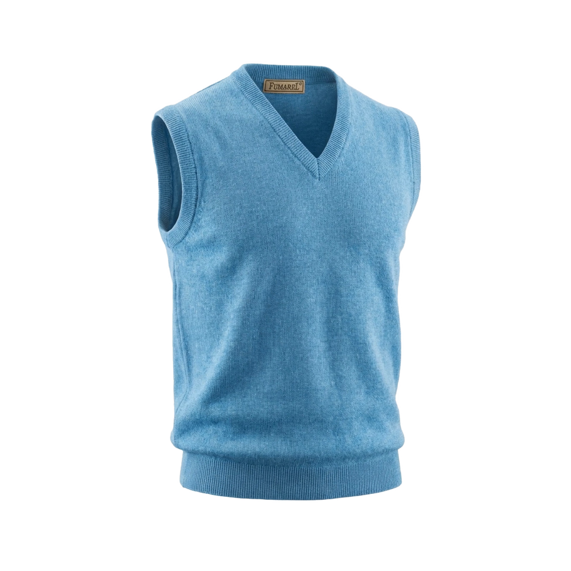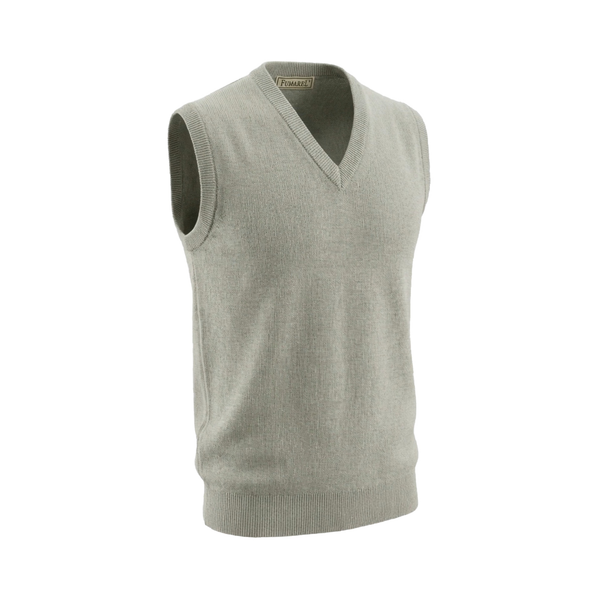 Jersey sin mangas, con cuello de pico 100% lana merino baby escocesa de calidad superior.